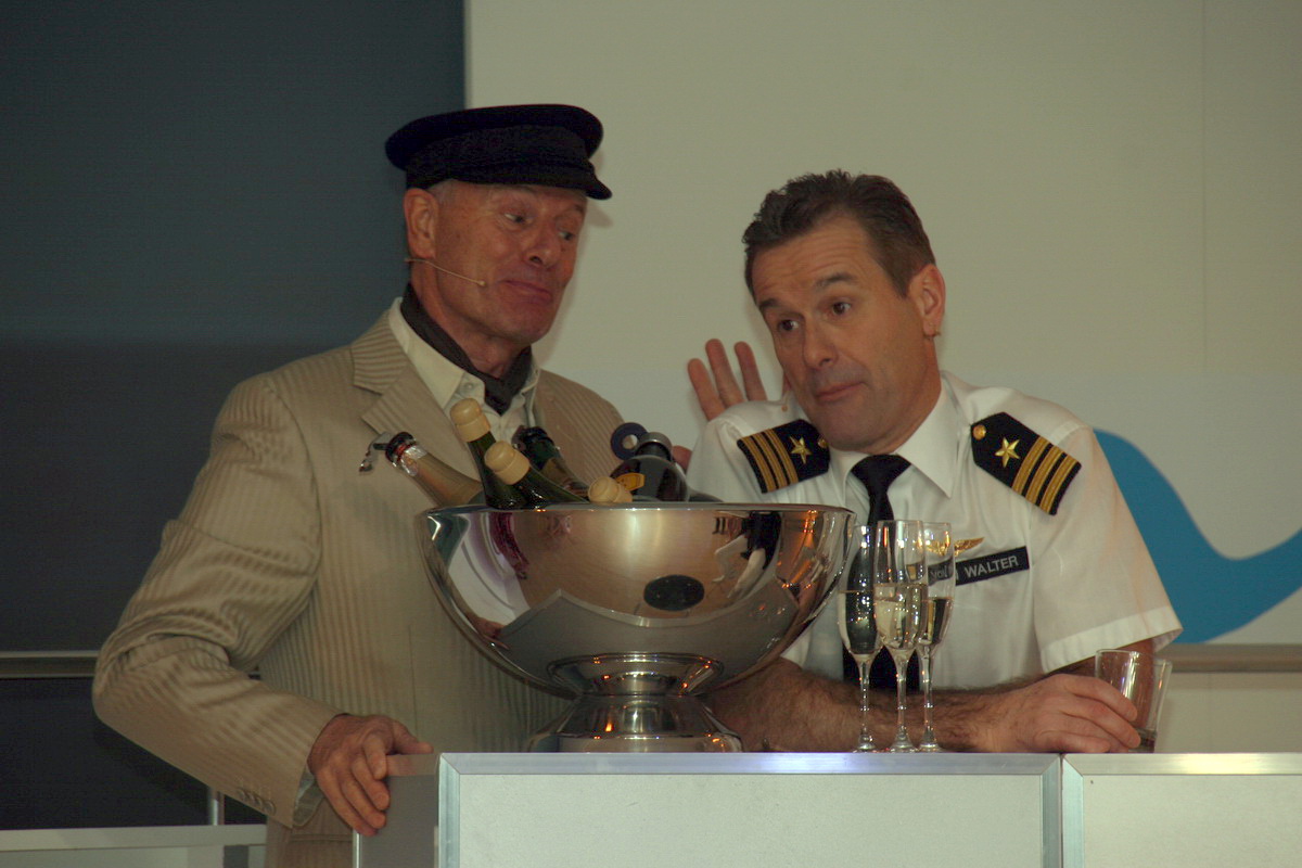 Der Steward sorgt für gute Stimmung zum seltsamen Spiel. Der Kapitän – den hat man lange schon nicht mehr gesehen. Bei einer Reise ins Glück weiss man nie, ob man dort auch wirklich ankommt.